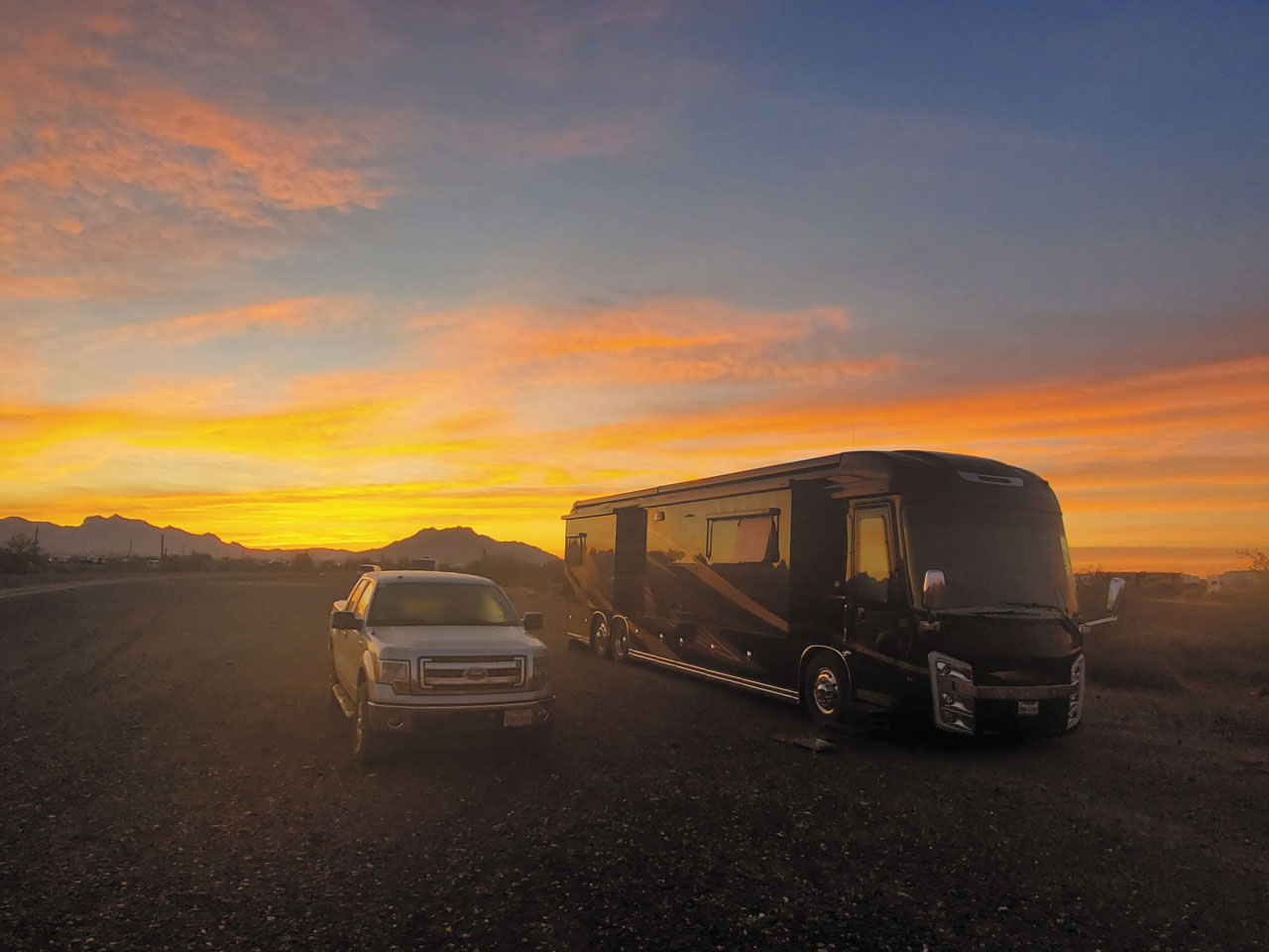 Jerry Vinson caught a golden sunrise this past January in Quartzsite, Arizona, where winter camping and RV shows are legendary.