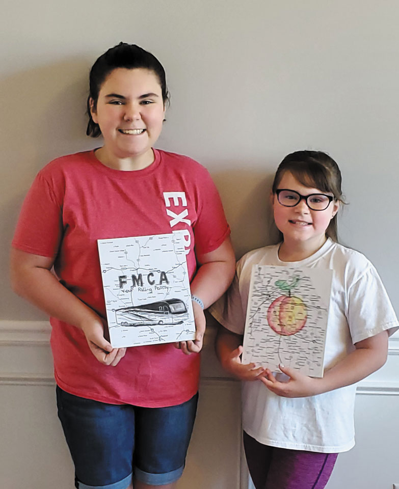 Maddy, left, and Maci Miskell are sisters who created artwork that shows they travel by RV and attend FMCA events.