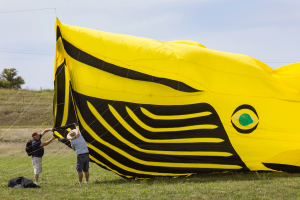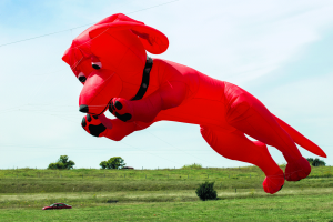 Look! There’s a flying purple octopus, and it’s larger than life. Over there, a horse is galloping across the sky. Do you see the brightly colored fish hovering in the air? These creatures really are soaring over the rural Nebraska prairie. There’s even a yellow whale that’s bigger than an RV.