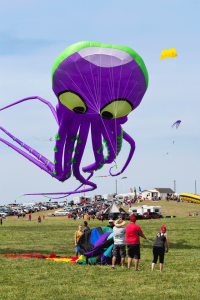 These aren’t your ordinary kites; some measure an astounding 135 feet long. Because of their size, the gigantic kites often are anchored to the ground with ropes and stakes, and it may take several people to get them into the air.