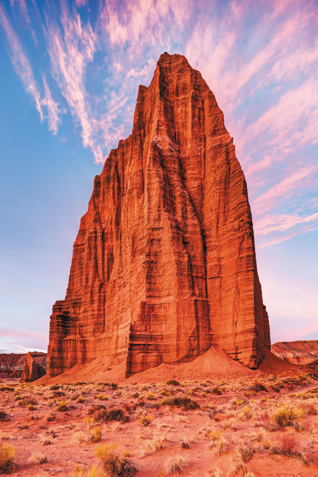 The Temple of the Sun looms in the park’s remote Cathedral Valley, where sandstone shapes resemble Gothic cathedrals.
