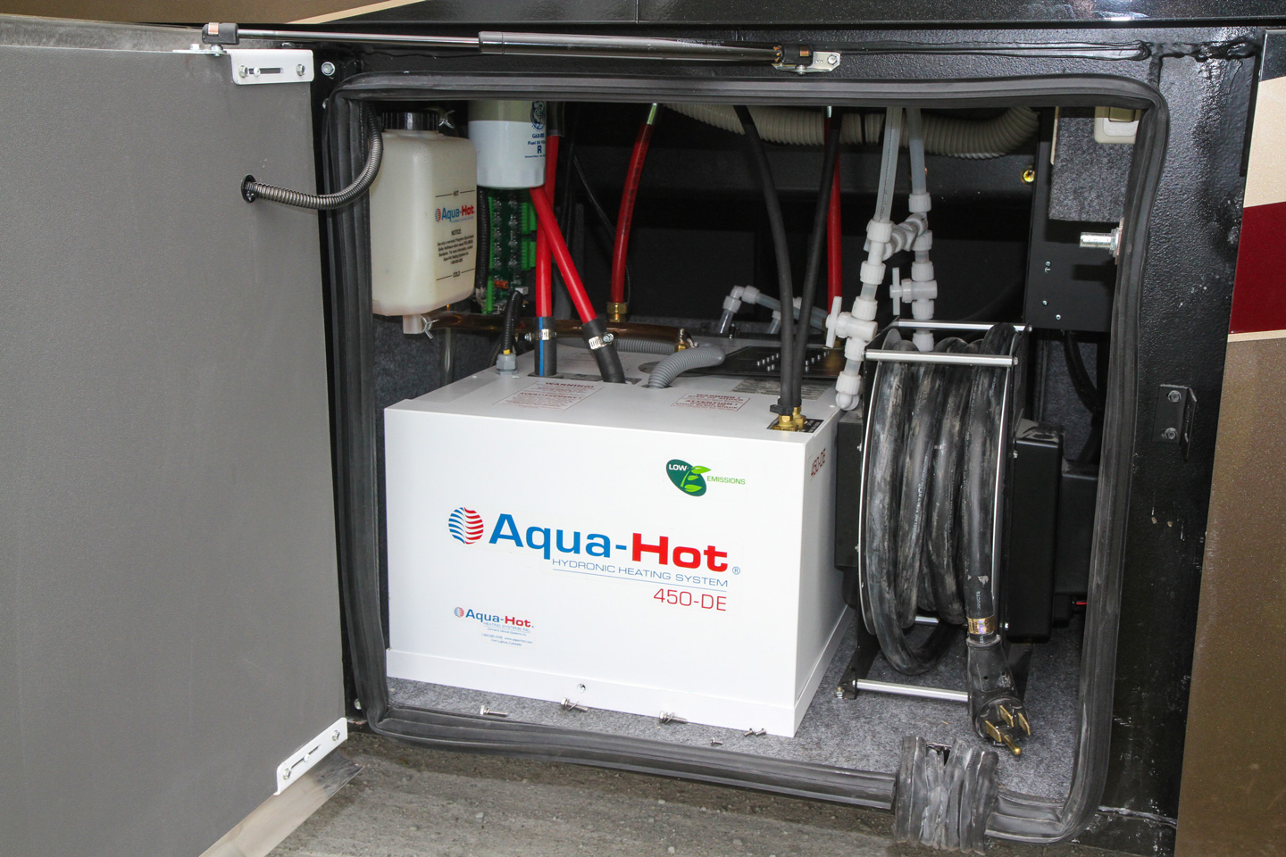 Installed in a diesel motorhome, this Aqua-Hot system warms the coach’s interior and supplies domestic hot water.