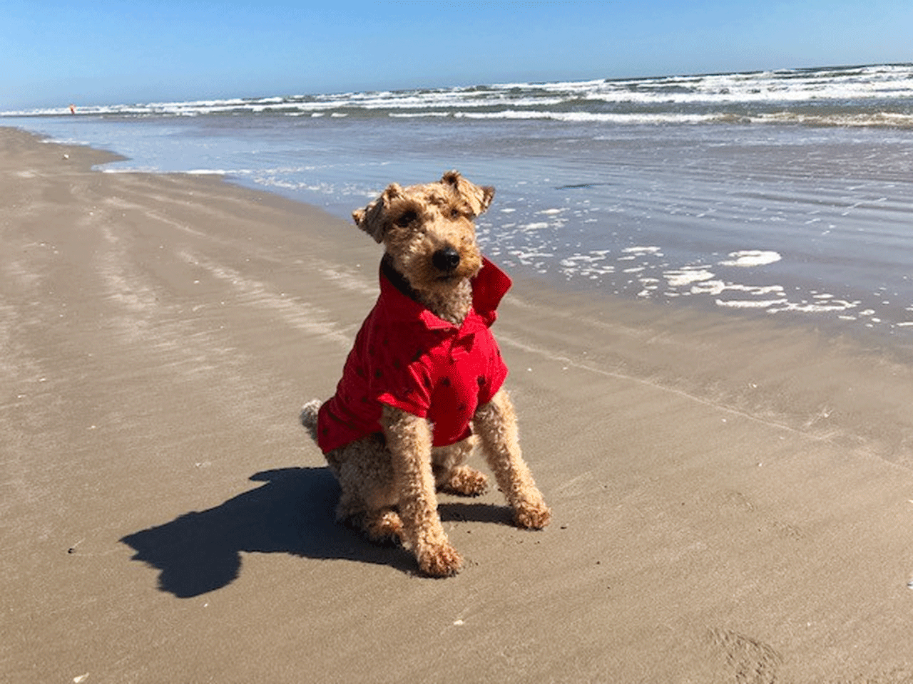 Captain Cruise, a Welsh terrier, looks festive during a trip to Port Aransas, Texas, with Becky Teague, his human.