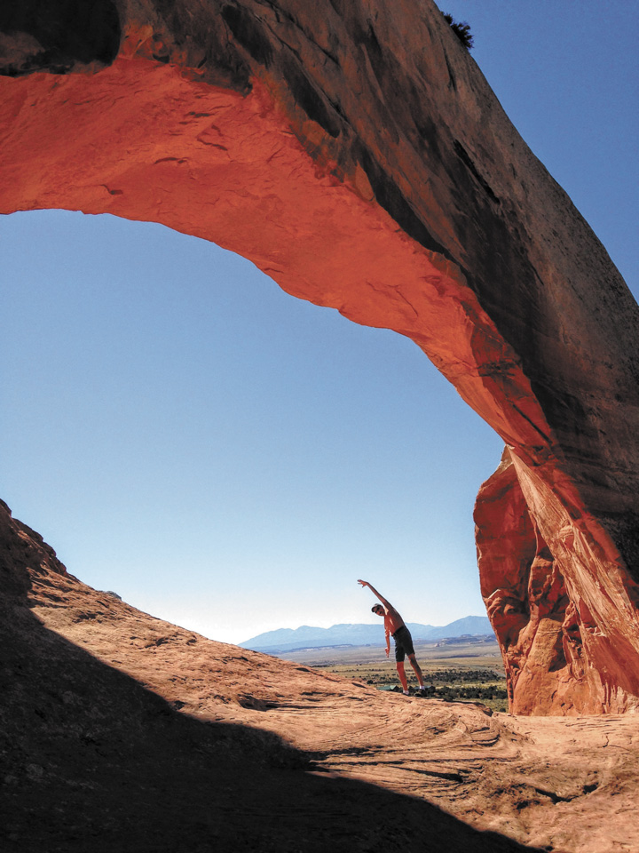 Ken and Chris Wurtenberger savored the scenery during a motorhome trip to Utah, including Arches National Park, where Ken struck a fun pose under one of the sandstone formations.