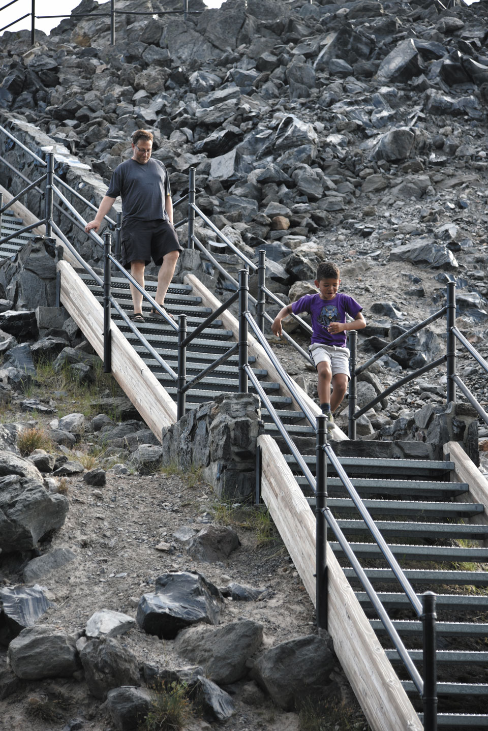 On an interpretive loop trail that leads up and onto the Big Obsidian Flow, hikers view black obsidian glass and hardened pumice lava.