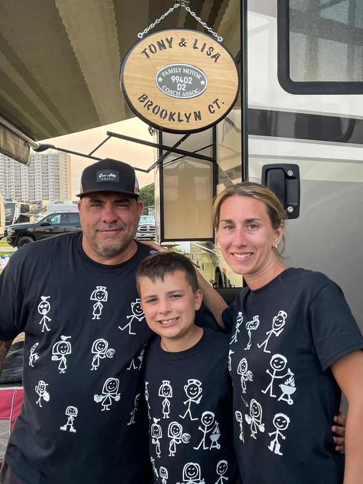 Recently we bought a new fifth-wheel toy hauler. We saw that FMCA now allows members to have towable RVs, so we happily rejoined. What was even more exciting was that we were able to have our original number back — F99402. Our daughters have since grown up and have families of their own, and they love camping. Our older daughter, Rebecca, and her husband, William Whiting, from Florida, have a travel trailer. Our younger daughter, Lisa, and her husband, Antony Sangillo, from Connecticut, have a Class A motorhome. So, it was only right for us to sign them up as well. We are so proud to have them share our FMCA number, with Rebecca being F99402D1 and Lisa being F99402D2, for Daughter 1 and Daughter 2.