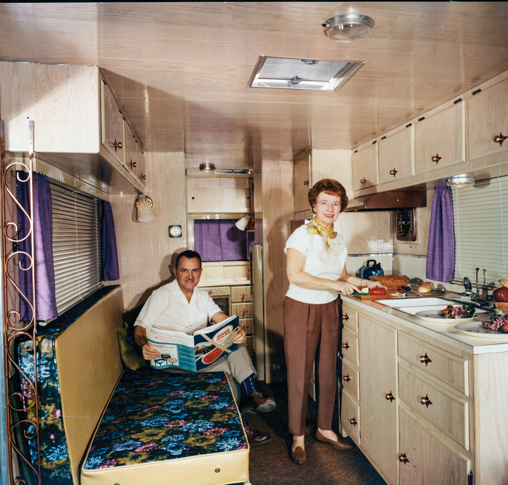 Australians Vic and Vi White, F748, toured the globe for two decades, often sharing their stories with their fellow FMCA members in Family Motor Coaching magazine (now Family RVing). Here, they pose in their first motorhome, a Pickwick Traveliner, which they nicknamed “The Happy Wanderer.”