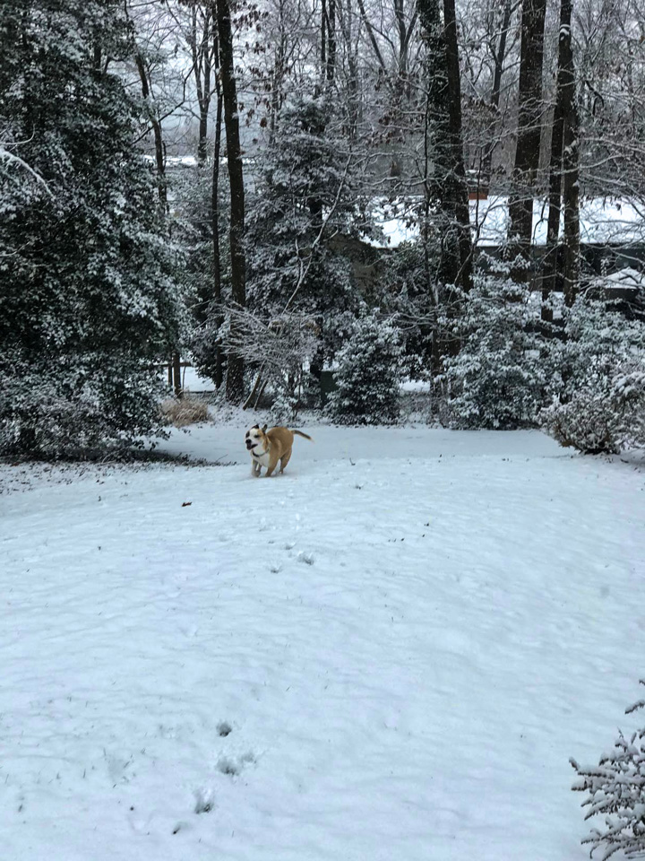 Mutt Mulligan, rescue pet and official “spokesdog” for the TurfMutt Foundation, loves the snow and encourages everyone to spend time outdoors, even in wintertime.