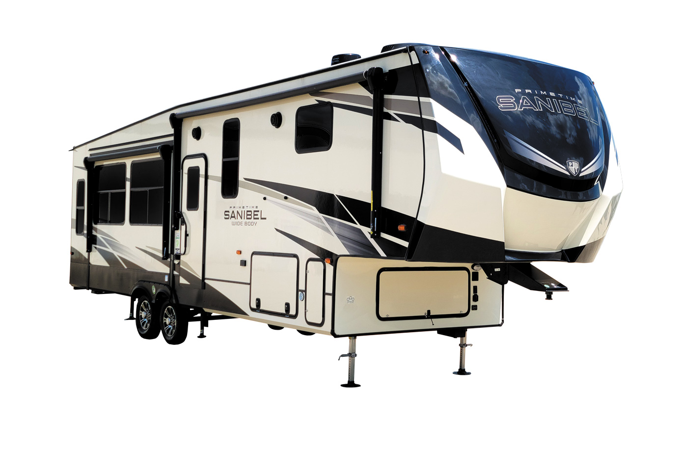 RVers who are searching for a lot of house in their rolling home might want to check out the new wide-body Sanibel 3602 WB and other floor plans in this “intelligently” designed fifth-wheel travel trailer line.