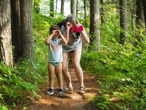 If you forget the binoculars, never fear; pretend ones work just as well for spotting birds during a hike.