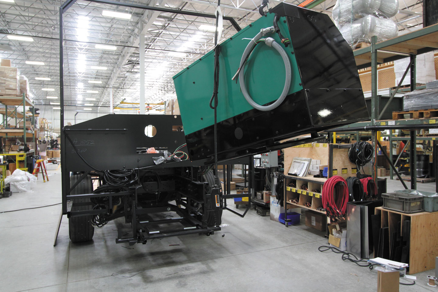 Early in production, a diesel generator is installed in a diesel pusher motorhome chassis.