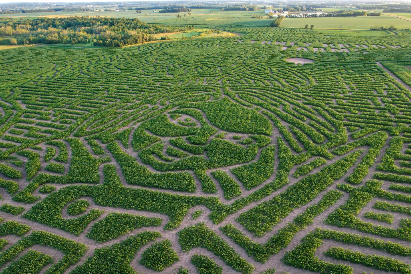 Stoney Brook Farms in Foley, Minnesota, has created what is likely the world’s biggest corn maze. In fact, they hope to have that certified by Guinness World Records this year. Sweet corn is the 700-acre farm’s biggest crop — followed closely by pumpkins — and they created their first corn maze in 2017. The 2022 version covers 110 acres, with 32 miles of pathways. The theme is “Halloween Villains.” It encompasses four different mazes with varied difficulty levels. To help navigate, visitors can scan a QR code to track their location via a cellphone.