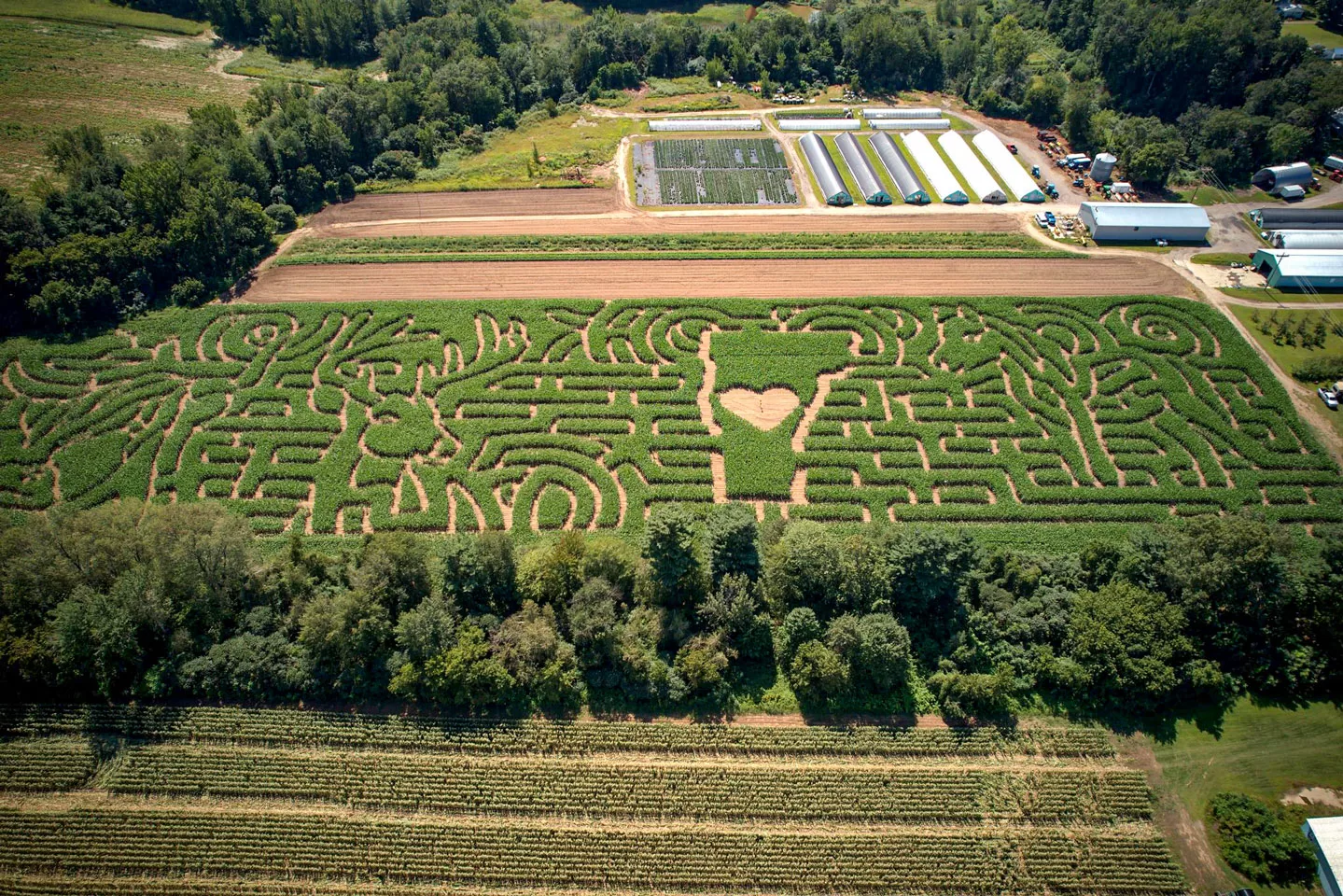 Navigating Sam Mazza’s corn maze is a popular autumn adventure. This year, images of animals — and the state of Vermont — were artfully carved into the fields.