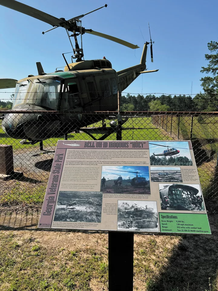 The Huey helicopter on display at the Georgia Veterans State Park was involved in a campaign during the Vietnam War.