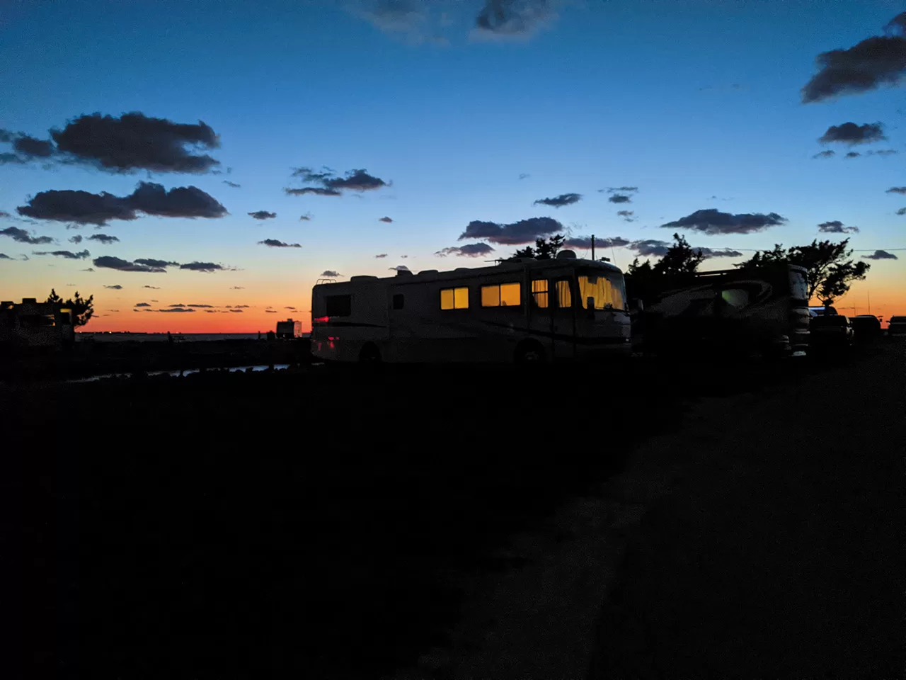 Stunning sunsets were a nightly occurrence in Frisco, North Carolina, where Jean Morgan captured this shot of her Monaco Dynasty motorhome.