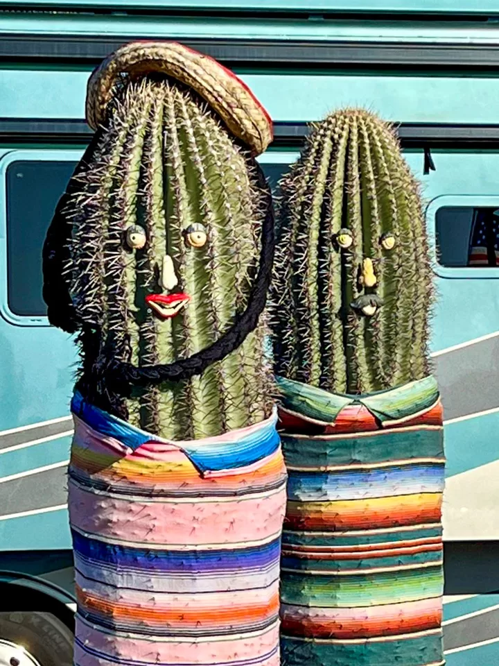 Bill and Kathy Blackman couldn’t resist stopping to admire these whimsical cactus people while visiting Picacho Peak State Park in southern Arizona.