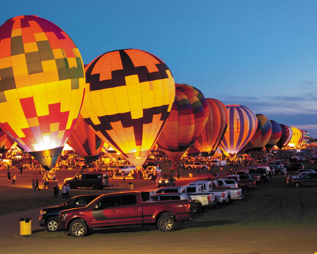 Balloon Fiesta guests will be able to enjoy a scheduled mass ascension followed by an “eclipse glow,” which will feature balloons on the launch field in the darkness from the eclipse.