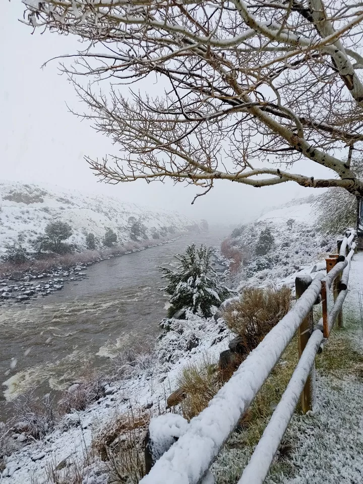 Snow is possible any time of year in Yellowstone. We have experienced it every month of the year and have captured wintry scenes of our campground and snowcapped mountains in Paradise Valley.