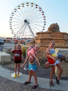 We have also participated in the egg-rolling contest, tall corn contest, cow-chip-throwing contest, Big Wheel races, and joke-telling contests over the years, and we enjoy volunteering at Little Hands On The Farm. Riding the Sky Glider, the Giant Slide, and Ye Old Mill is a family affair for us, and one day is always set aside just for the kids to ride rides all day and finish it off with cotton candy and a snow cone.