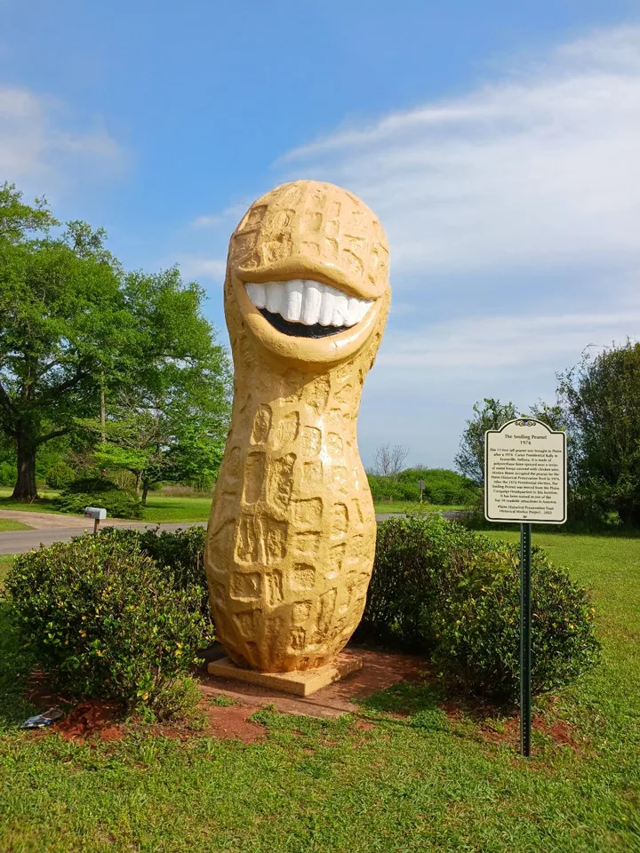 The “Smiling Peanut,” shared by David Bean, is a fixture at Jimmy Carter National Historical Park in Plains, Georgia, acknowledging the city’s peanut economy and the late president’s peanut farming business.