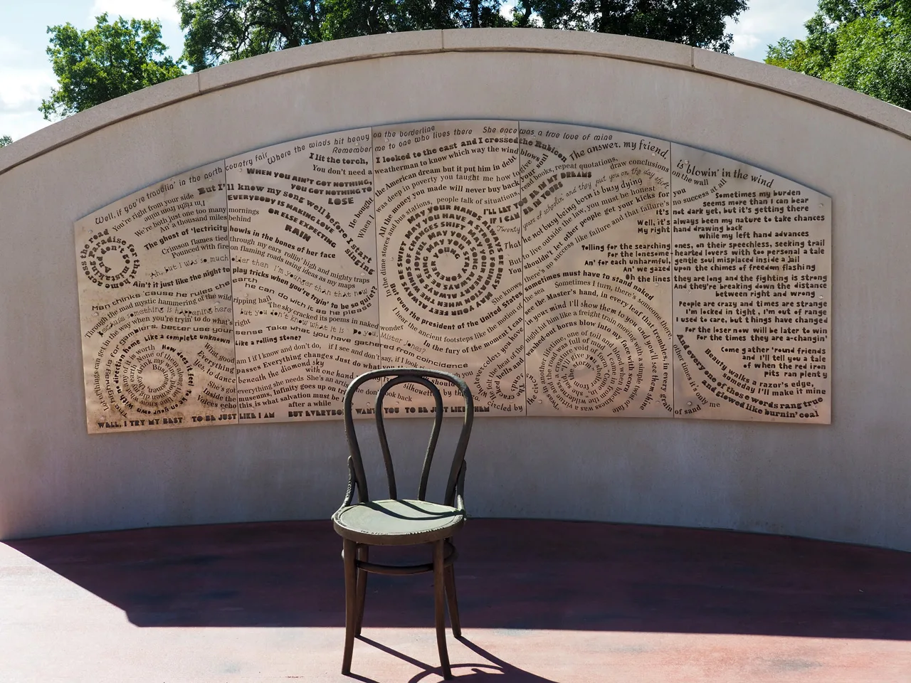 Close by, in front of Hibbing High School, is a beautiful, curved brick wall inscribed with Dylan’s poetic song lyrics. Sit for a few minutes and appreciate the brilliance of his Nobel Prize in Literature-winning words, such as: “May your heart always be joyful, may your song always be sung, may you stay forever young”; “The answer, my friend, is blowin’ in the wind”; and “Blame it on a simple twist of fate.”