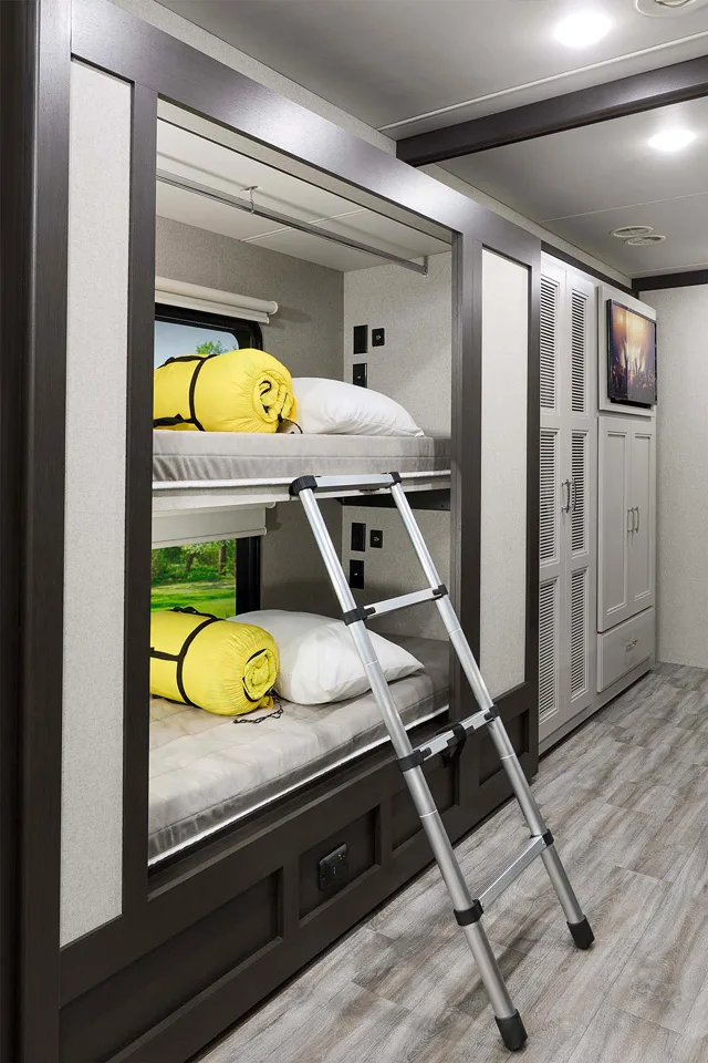 Representatives of other RV manufacturers that feature bunks in some of their floor plans said it’s also prudent for RV buyers to consider the future growth of the camping family, in both physical size and number of campers. Across the board, the consensus is it’s a better investment to go bigger early on than to realize a couple years later that the model you purchased no longer fits the family.