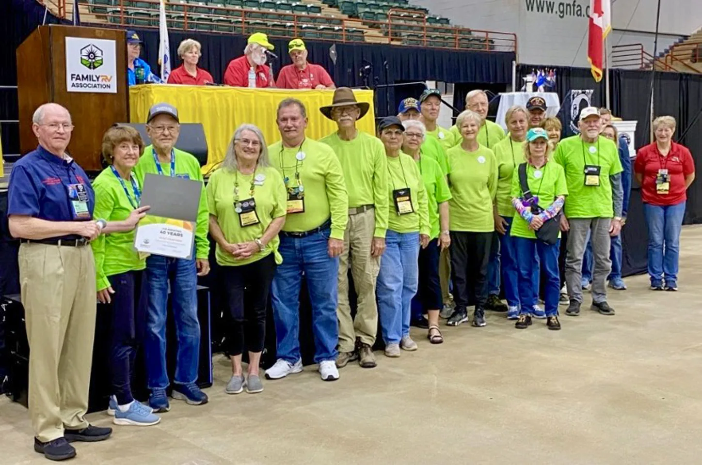 During the FRVA convention in Perry, Southeast Area president Bill Dees presented the Gulf Coasters their anniversary certificate.