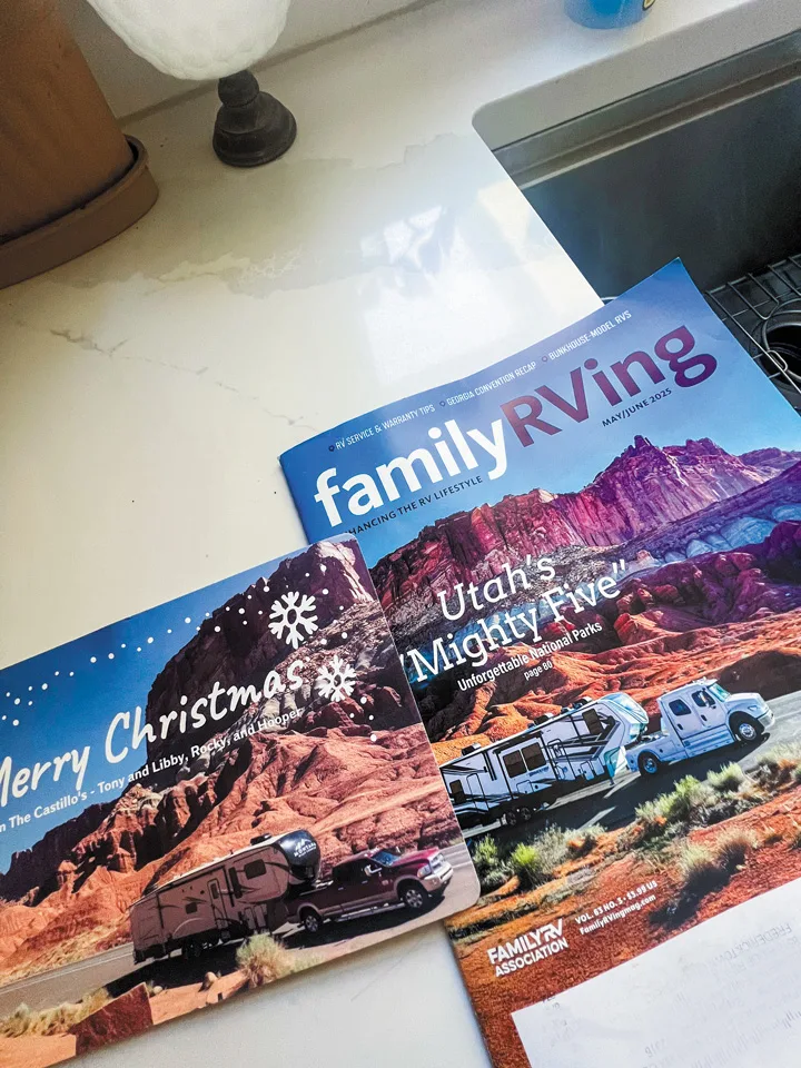 When Elizabeth and Tony Castillo received the May/June 2025 issue of Family RVing, they noticed that the cover scene looked very much like the photo on the Christmas cards they sent in 2021.
