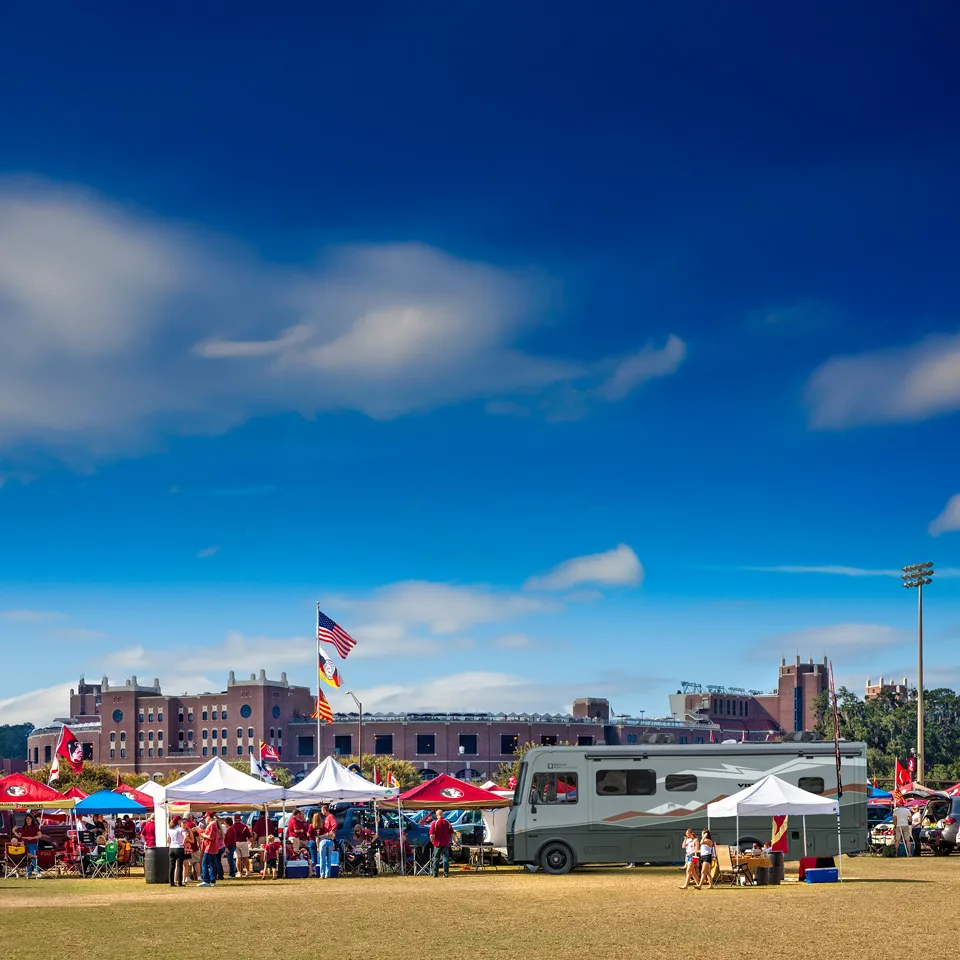 While cars, SUVs, and pickups can provide the basic elements for parking-lot tailgating parties, RVs really shine in this element. They offer ample space to mingle, stretch, and relax and also furnish luxuries such as entertainment centers to watch the game, a fully equipped kitchen, and one or more bathrooms so tailgaters don’t have to wait in line to use the community facilities.