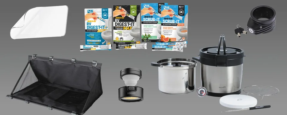 Practical accessories and assorted goods designed to make life easier and more enjoyable for RVers.